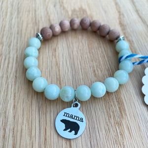 Mama Bear Silver Charm Amazonite & Rosewood Aromatherapy Essential Oil Diffuser Bracelet (8mm beads)