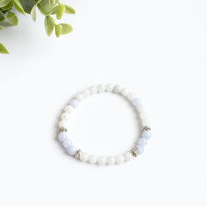 Moonstone and Blue Chalcedony Skinny Stacker Bracelet (6mm beads)