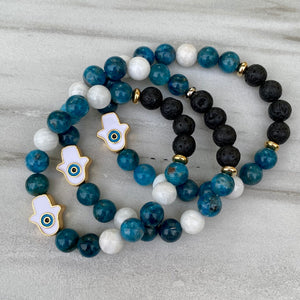 Evil Eye Hamsa Apatite & Moonstone Aromatherapy Essential Oil Diffuser Bracelet (8mm beads)