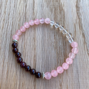 Garnet, Rose Quartz and Clear Quartz Skinny Stacker Bracelet (6mm beads)