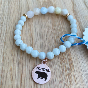 Moonstone and Beryl Mama Bear Skinny Stacker Bracelet (6mm beads)